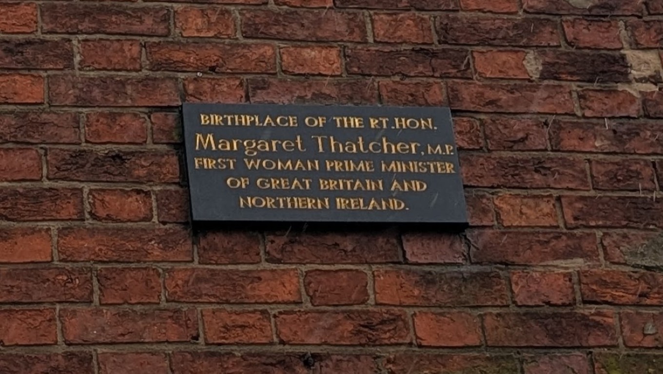 The weather that weekend was fairly miserable, but we decided to head out on Sunday morning anyway. It was "chucking it down" with rain as we made our way toward her childhood home. Visiting was a slightly strange experience; the town itself famously has a complicated relationship with Thatcher, given how incredibly divisive a figure she remains. Do they celebrate, or do they ignore?