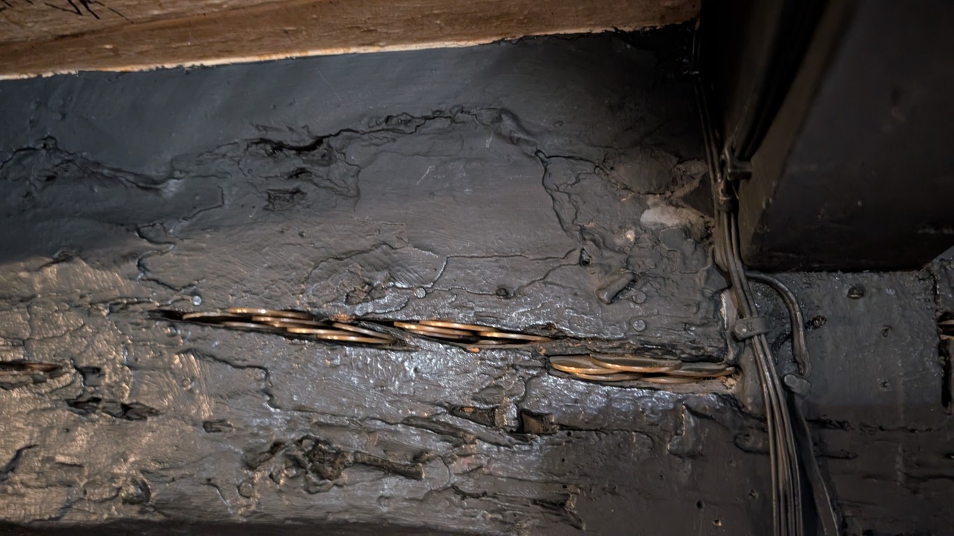 The story goes that as the lads were heading off on their bombing raids, they would come to the pub and wedge their spare coins into the beams. If they came back safely, their money was there waiting for them to pay for their celebratory pint.